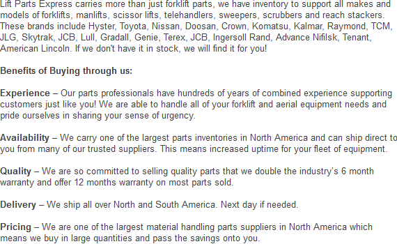 We provide you the best deals on all parts for your fleet of trucks. For a quote on a part or attachment we offer, please get in touch with us at: